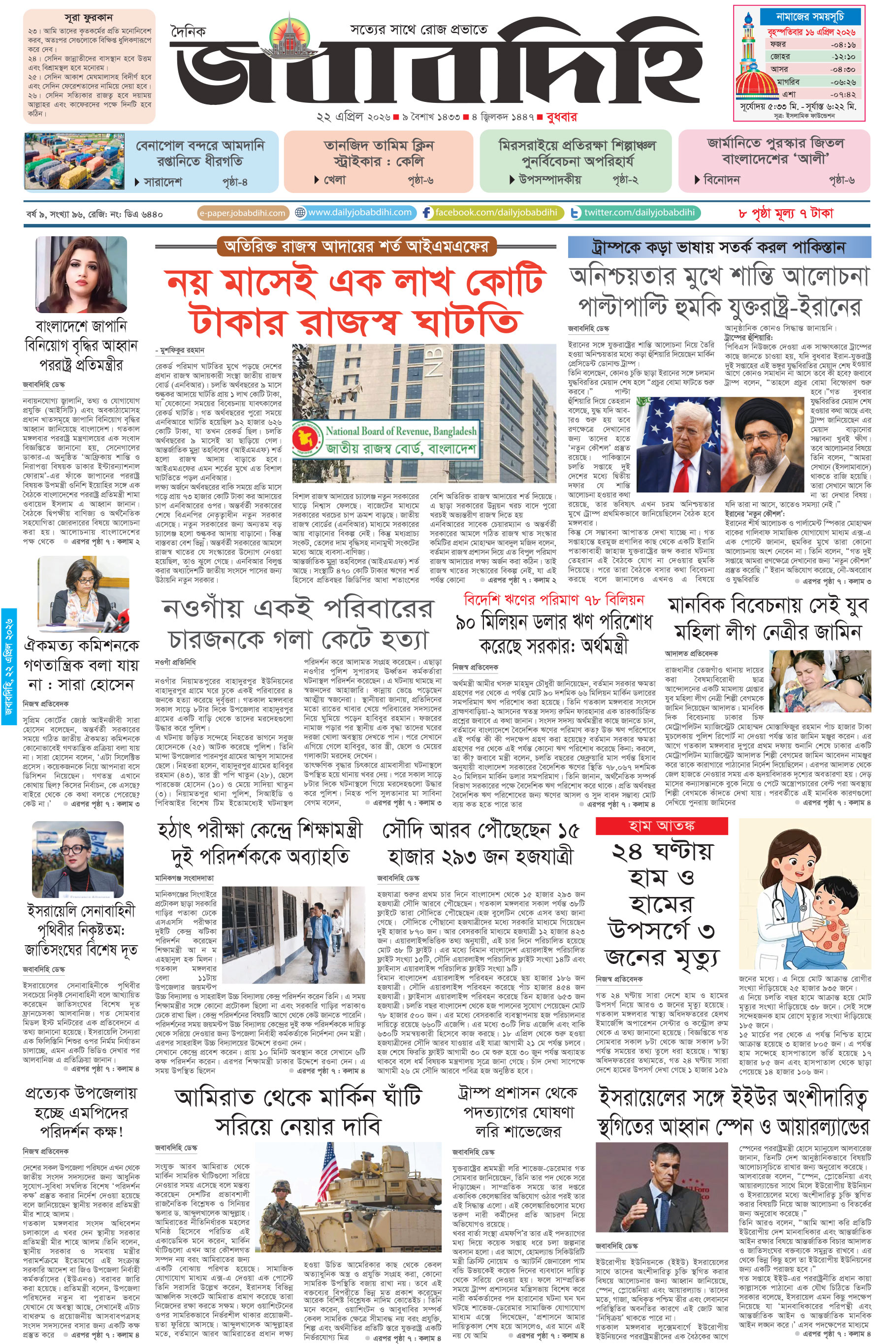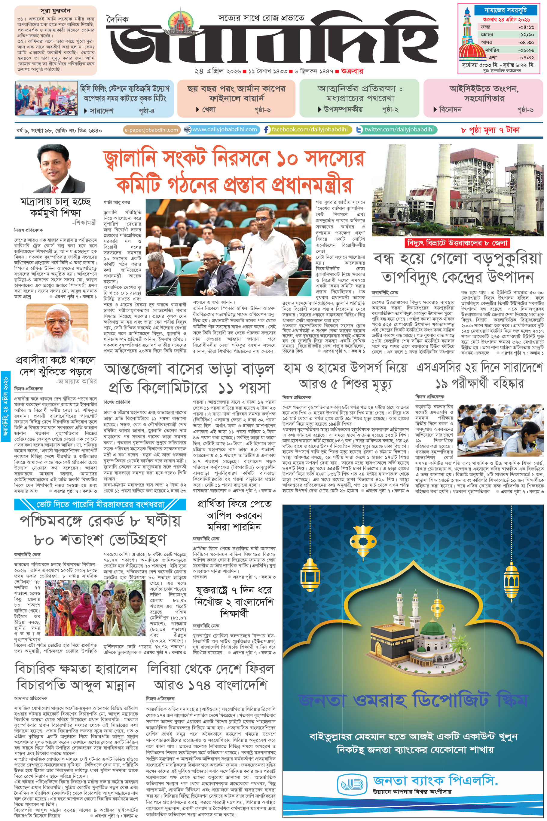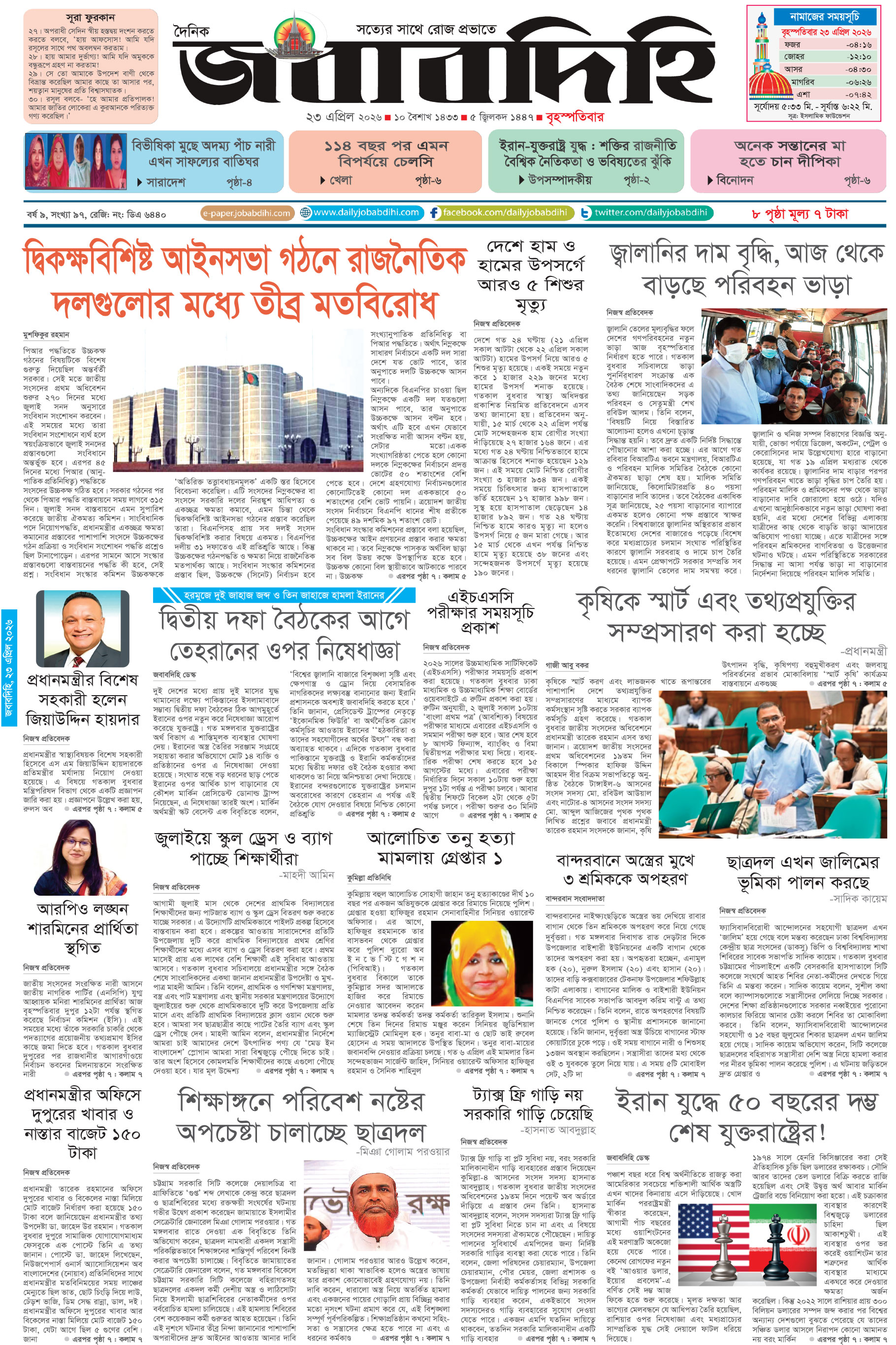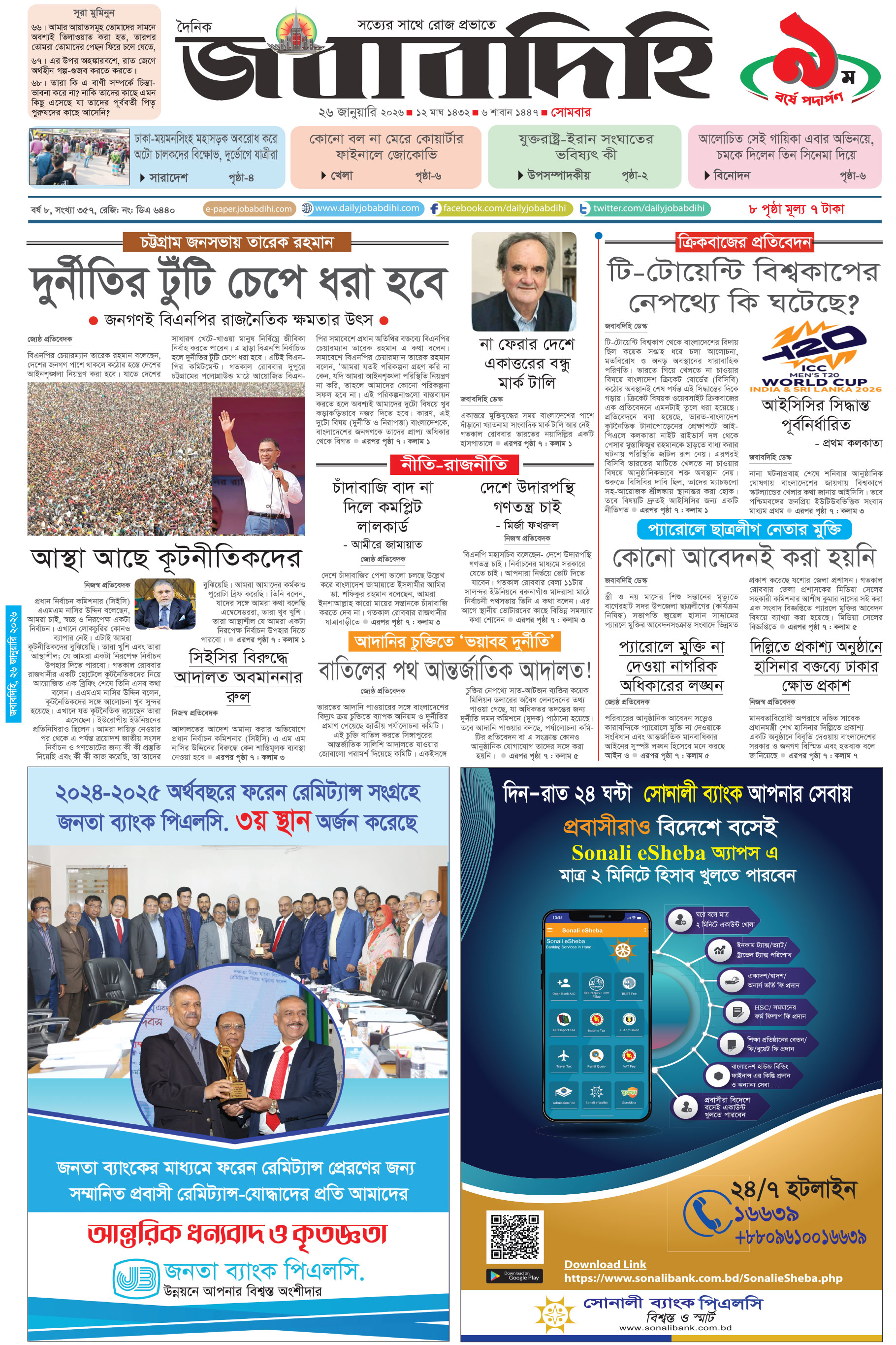 বার্তা বিভাগ : +8802-58316172, বাণিজ্যিক বিভাগ : +8802-58316175, E-mail: info@jobabdihi.com , contact@jobabdihi.com