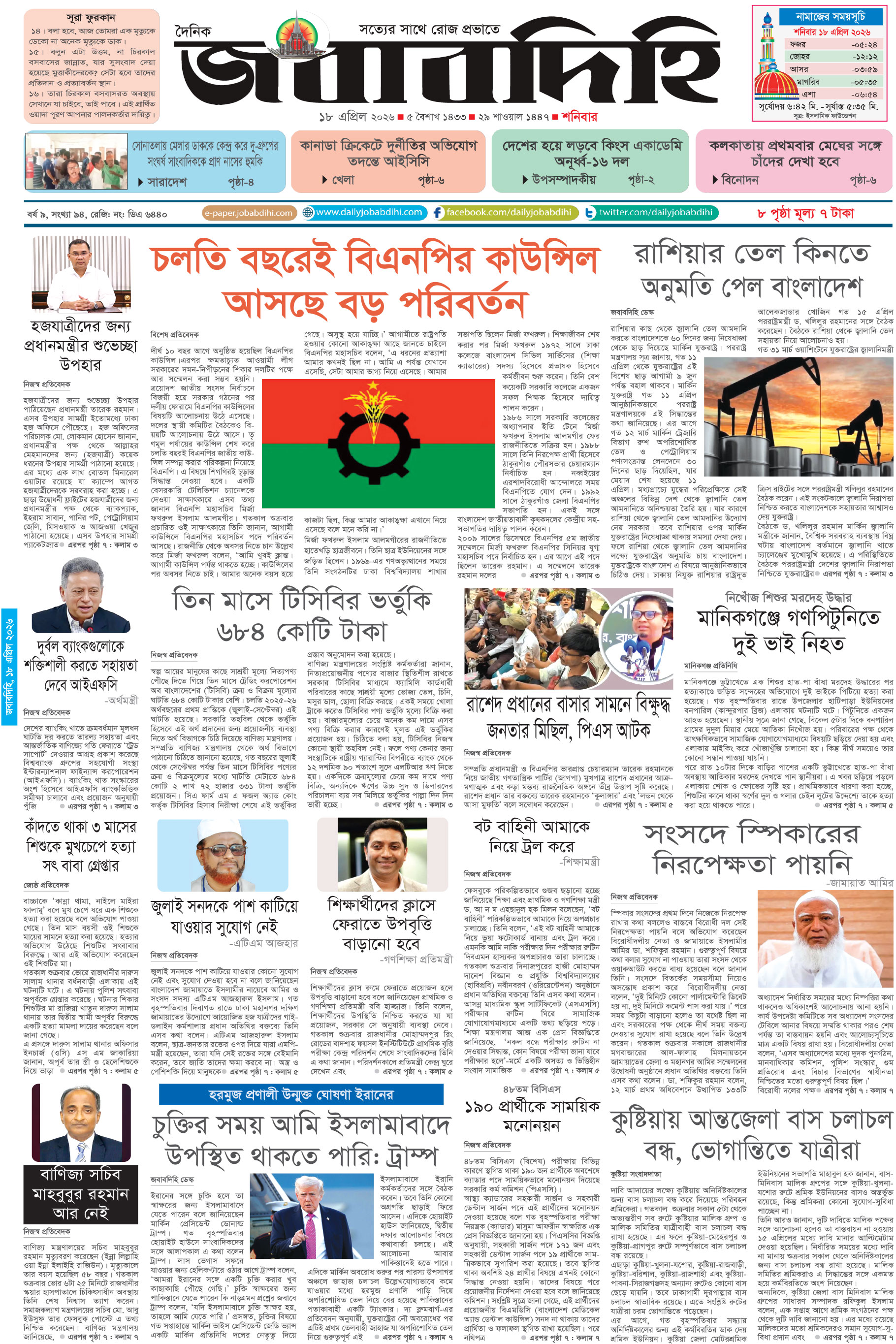 শনিবার, ১৮ এপ্রিল ২০২৬