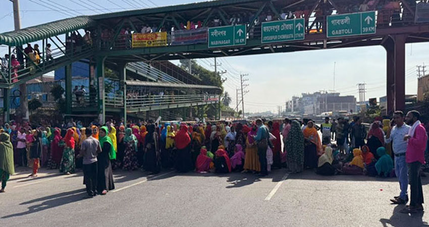 আজ বৃহস্পতিবার (২৮ নভেম্বর) সকাল ৯টার দিকে মাহমুদ জিন্স লিমিটেড কারখানার শ্রমিকরা কাজে যোগদান না করে বকেয়া বেতনের দাবি জানিয়ে বিক্ষোভ শুরু করেন। পরে বিক্ষুব্ধ শ্রমিকরা চন্দ্রা ফ্লাইওভারের সংযোগে সড়কের উভয় পাশে অবরোধ করেন। এতে ওই সড়কে যানবাহন চলাচল বন্ধ হয়ে তীব্র যানজট সৃষ্টি হয়। খবর পেয়ে পুলিশ ও সেনাবাহিনীর সদস্যরা ঘটনাস্থলে গিয়ে শ্রমিকদের সঙ্গে কথা বলে পরিস্থিতি নিয়ন্ত্রণে নেওয়ার চেষ্টা করছেন।