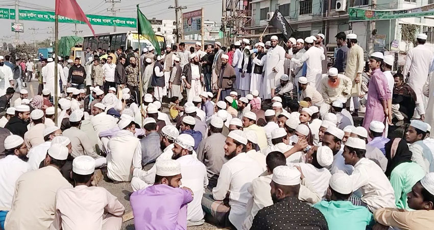 গাজীপুরে মাওলানা সাদ ও জুবায়েরপন্থিদের মধ্যে সংঘর্ষের ঘটনার বিচার ও ইজতেমা ময়দান জুবায়েরপন্থিদের বুঝিয়ে দেওয়ার দাবিতে ঢাকা-ময়মনসিংহ মহাসড়ক অবরোধ করে বিক্ষোভ করছেন জুবায়েরপন্থিরা।