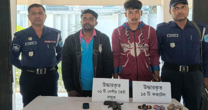 রাজবাড়ীর পাংশা উপজেলার সরিষা ইউনিয়নের বহলাডাঙ্গা এলাকা থেকে বুধবার ভোরে দেশিয় তৈরি একটি বন্দুক ও ১৩টি ককটেলসহ দুজনকে গ্রেপ্তার করেছে পাংশা থানার পুলিশ।
