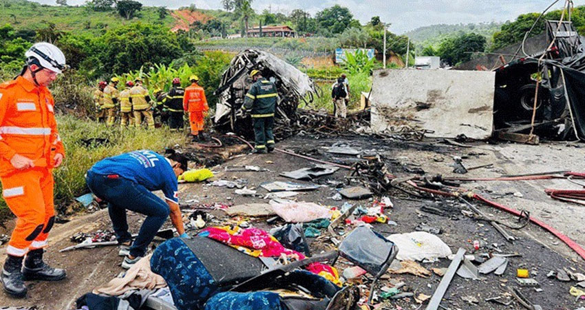 ব্রাজিলে যাত্রীবাহী বাসের সঙ্গে একটি ট্রাকের সংঘর্ষে অন্তত ৩৮ জন নিহত হয়েছেন। গতকাল শনিবার (২১ ডিসেম্বর) স্থানীয় সময় ভোরে দেশটির দক্ষিণ-পূর্বাঞ্চলীয় রাজ্য মিনাস গেরাইসে এ দুর্ঘটনা ঘটে।