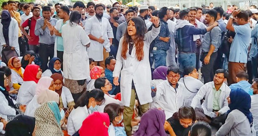 ট্রেইনি চিকিৎসকদের ভাতা ২৫ হাজার টাকা থেকে বাড়িয়ে ৫০ হাজার টাকা করার দাবিতে রাজধানীর শাহবাগ মোড় অবরোধ করেছেন বঙ্গবন্ধু শেখ মুজিব মেডিকেল বিশ্ববিদ্যালয়সহ (বিএসএমএমইউ) সব হাসপাতালের বেসরকারি ট্রেইনি চিকিৎসকরা।