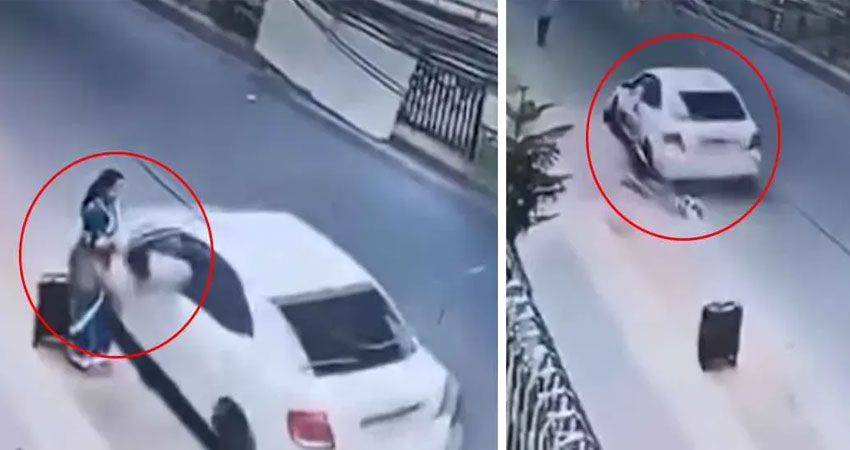 শাড়ি পরা এক নারী ট্রলি ব্যাগ হাতে রাস্তায় দাঁড়িয়ে অপেক্ষা করছিলেন। হঠাৎ একটি প্রাইভেটকার আসে। সেই চলন্ত প্রাইভেটকারের সামনের জানালা দিয়ে একজন ঝুঁকে পড়েন এবং সেই নারীর হাতে থাকা ভ্যানিটি ব্যাগ ছোঁ মেরে টান দেন। এতে ব্যাগের সঙ্গে সেই নারীকেও টেনে-হিঁচড়ে অনেক দূর নিয়ে যায় প্রাইভেটকারটি। পরে ওই নারী ব্যাগটি ছেড়ে দিলে প্রাণে রক্ষা পান। কিন্তু সেই নারীর অবস্থা গুরুতর।