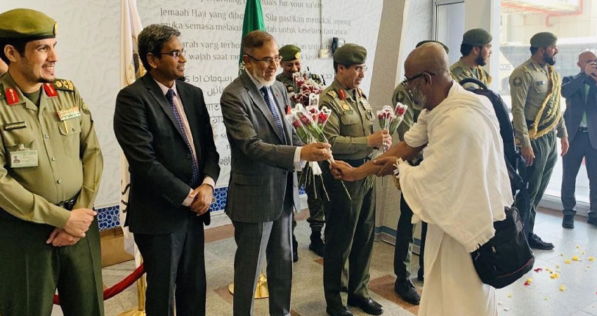 সৌদি আরবে নিযুক্ত বাংলাদেশের রাষ্ট্রদূত মো. দেলওয়ার হোসেন বিমানবন্দরে বাংলাদেশি হজযাত্রীদের স্বাগত জানান।