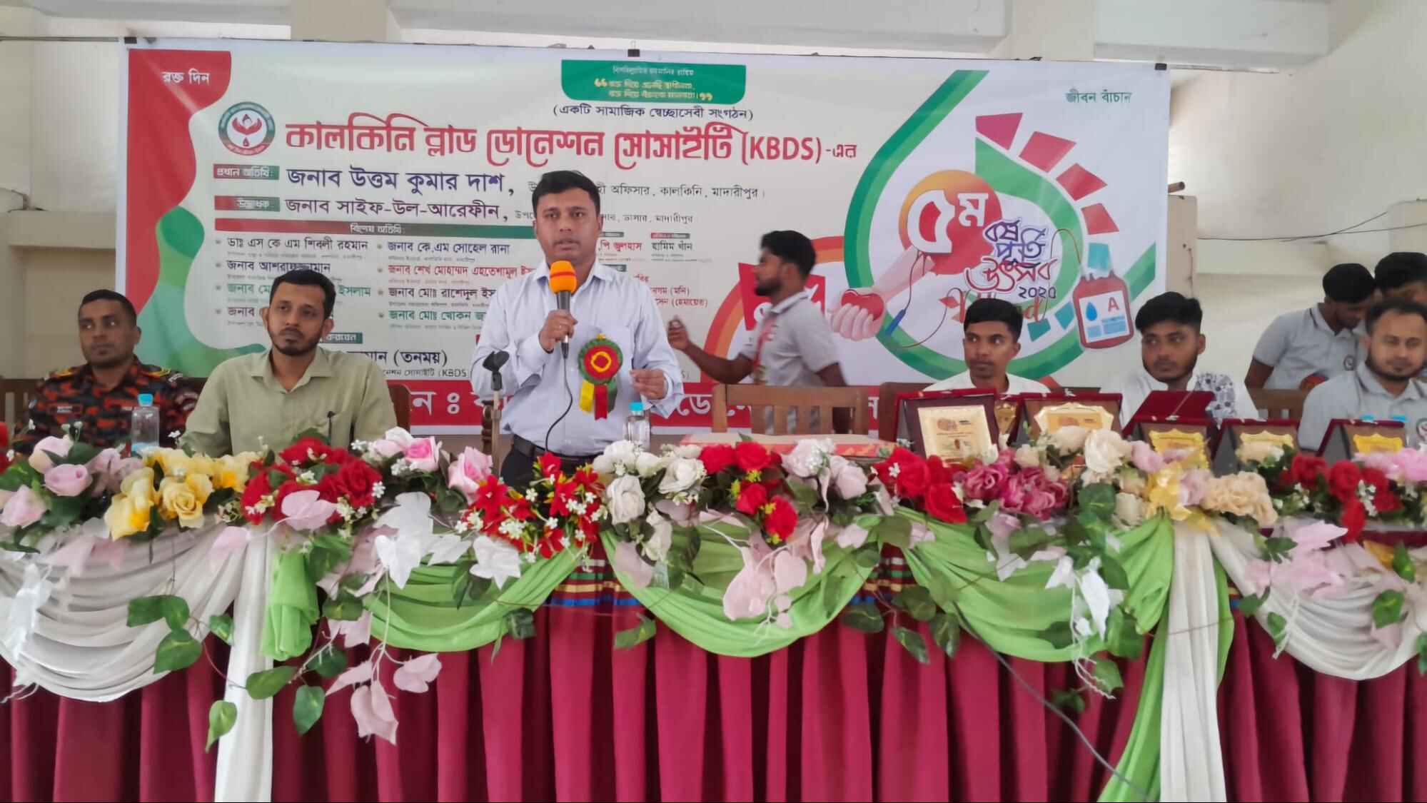 রক্ত দিয়ে এনেছি স্বাধীনতা,রক্ত দিয়ে বাঁচাবো মানবতা এই শ্লোগানকে সামনে রেখে মাদারীপুরের কালকিনিতে সেচ্ছাসেবী সংগঠন কালকিনি ব্লাড ডোনেশন সোসাইটির ৫ম প্রতিষ্ঠা বার্ষিকী পালিত হয়েছে।