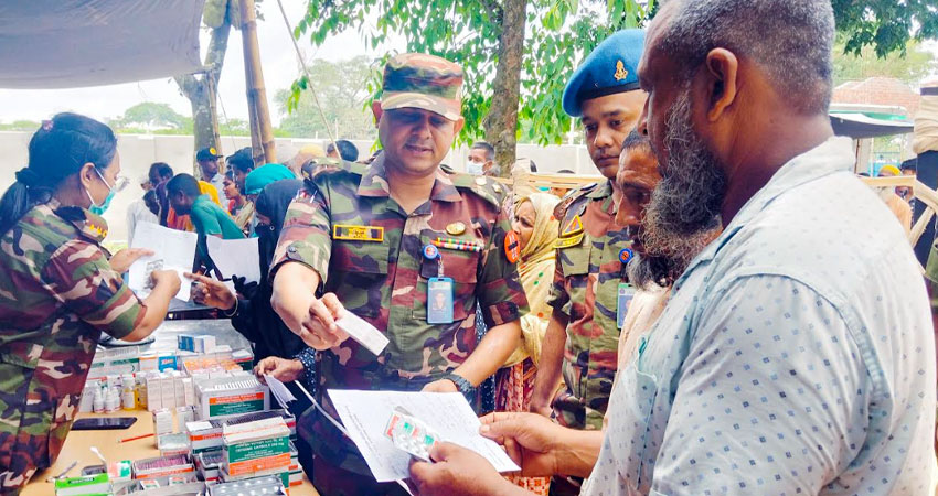 ২৫ ফিল্ড এ্যাম্বুলেন্সের অধিনায়ক লে: কর্ণেল মো: রকিব উদ্দিন মজুমদার এমসিপিএস, ডিএফএম, এএমসি জানান, ইন এইড টু সিভিল পাওয়ারের আওতায় দেশের সাধারণ মানুষের পাশে দাঁড়াতে বাংলাদেশ সেনাবাহিনী মানবিক উদ্যোগ অব্যাহত রেখেছে। এরই ধারাবাহিকতায় রোববার রাণীনগর উপজেলার আবাদপুকুর উচ্চ বিদ্যালয় প্রাঙ্গনে ৬জন বিশেষজ্ঞ চিকিৎসকের সমন্বয়ে মেডিসিন, চক্ষু, গাইনি, শিশু ও চর্ম রোগের চিকিৎসা প্রদানসহ প্রায় ৩০ প্রকারের ওষুধ বিনামূল্যে প্রদান করা হয়।