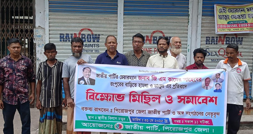 জাতীয় পার্টির চেয়ারম্যান জি এম কাদের এর রংপুরের বাড়িতে ভাঙচুর ও অগ্নি সংযোগের প্রতিবাদে বিক্ষোভ সমাবেশ করেছে জেলা জাতীয় পার্টি ও এর অঙ্গ সংগঠন এর নেতৃবৃন্দ।