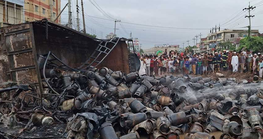 ব্রাহ্মণবাড়িয়ায় সিলিন্ডার বোঝাই ট্রাক উল্টে বিস্ফোরণ