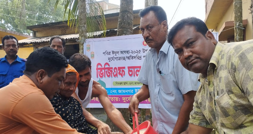 আজ বুধবার সকালে জামনগর ইউনিয়ন পরিষদের আয়োজনে এবং দুর্যোগ ব্যবস্থাপনা ও ত্রাণ মন্ত্রণালয়ের সহযোগিতায় প্রত্যেক পরিবারকে ১০ কেজি করে চাল দেওয়া হয়।