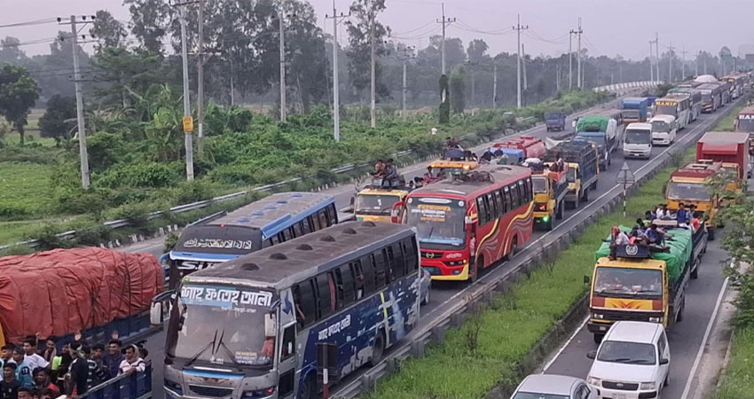 পুলিশ বলছে, মহাসড়কে যানজট নিরসনে তারা কাজ করছে। বেলা বাড়ার সঙ্গে সঙ্গে যানজট নিরসনের আশ্বাস তাদের।