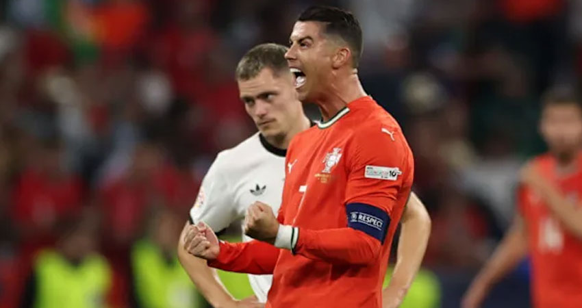 পাঁচ মিনিট পরই আন্তর্জাতিক ক্যারিয়ারের ১৩৭তম গোল করেন ৪০ বছর বয়সী স্ট্রাইকার রোনালদো। সিআরসেভেনের ওই গোলে ঘরের মাঠে হৃদয় ভাঙে জার্মানদের।
