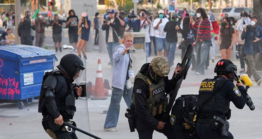 যুক্তরাষ্ট্রের লস অ্যাঞ্জেলেসে পুলিশের সঙ্গে বিক্ষোভকারীদের সংঘর্ষে উত্তেজনা চরমে পৌঁছায় রোববার বিকালে। শহরের মেট্রোপলিটন ডিটেনশন সেন্টারের বাইরে অনুষ্ঠিত এক প্রতিবাদকে পুলিশ ‘অবৈধ জমায়েত’ ঘোষণা করে।