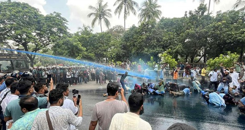 এরপর ১১টা ২৩ মিনিটে তাদের ওপর জলকামান ও সাউন্ড গ্রেনেড নিক্ষেপ করে ছত্রভঙ্গ করে দেওয়া হয়।