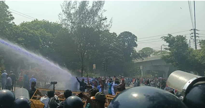 সোমবার (৭ জুলাই) দুপুর সোয়া ১২টার দিকে প্রধান উপদেষ্টার বাসভবন যমুনা সংলগ্ন কাকরাইল মসজিদ মোড়ে এ জলকামান ও সাউন্ড গ্রেনেড নিক্ষেপ করা হয়।