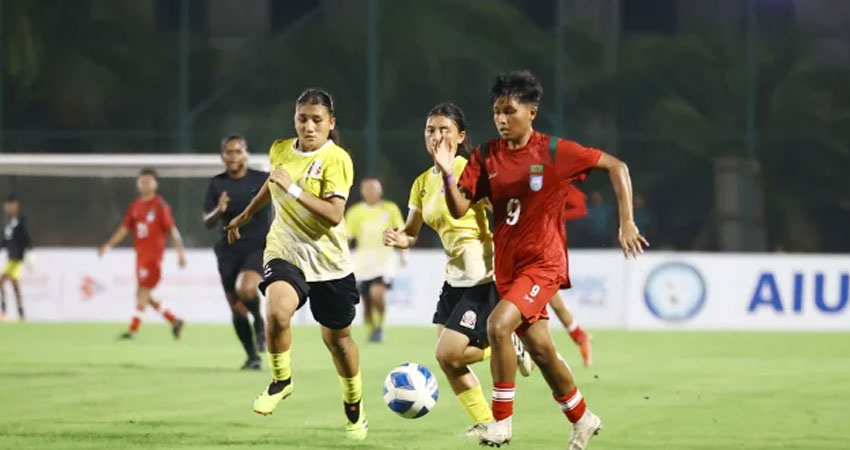 সাফ অনূর্ধ্ব-২০ নারী চ্যাম্পিয়নশিপের শিরোপার দিকে ধাপে ধাপে এগিয়ে চলেছে বাংলাদেশ দল। বৃহস্পতিবার রাতে বসুন্ধরা কিংস অ্যারেনার ট্রেনিং গ্রাউন্ডে আয়োজিত ম্যাচে ভুটানকে ৩-০ গোলে হারিয়েছে স্বাগতিকরা। দলের হয়ে জোড়া গোল করেন স্ট্রাইকার তৃষ্ণা রানী। অপর গোলটি আসে বদলি হিসেবে মাঠে নামা স্বপ্না রানীর পা থেকে।