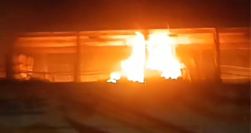 ফরিদপুরে দুর্ঘটনায় জব্দকৃত বাসে আগুন