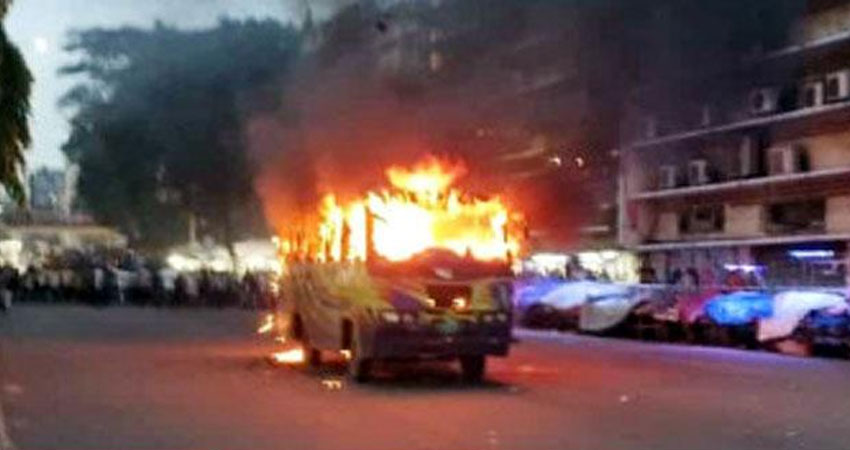 চট্টগ্রাম নগরের নিউমার্কেট মোড়ে একটি বাসে আগুন দিয়েছে দুর্বৃত্তরা। আজ রোববার (২০ জুলাই) সন্ধ্যা ৭টার দিকে এ ঘটনা ঘটে। খবর পেয়ে ফায়ার সার্ভিসের কর্মীরা আগুন নির্বাপণে কাজ করছে বলে জানিয়েছে প্রত্যক্ষদর্শীরা।