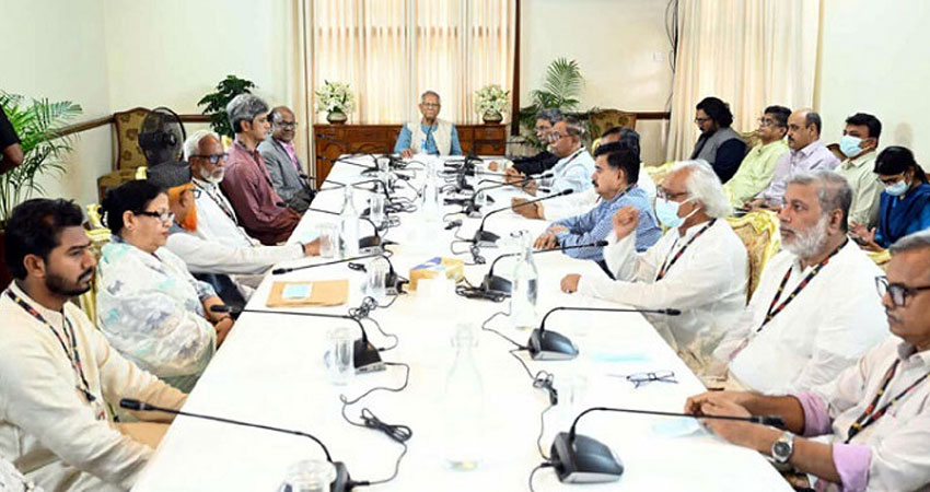গতকাল মঙ্গলবার (২২ জুলাই) রাতে প্রধান উপদেষ্টা দেশের অন্য চারটি রাজনৈতিক দলের (বিএনপি, জামায়াতে ইসলামী, এনসিপি ও ইসলামী আন্দোলন) সঙ্গে বৈঠক করেন। বৈঠক শেষে আইন উপদেষ্টা ড. আসিফ নজরুল গণমাধ্যমকর্মীদের জানান অত্যন্ত সৌহার্দ্যপূর্ণ পরিবেশে আলোচনা অনুষ্ঠিত হয়।