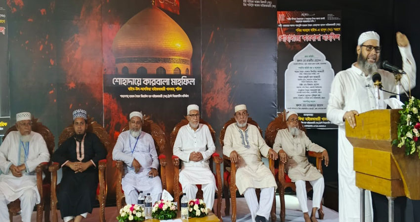 “মাহফিলে শাহাদাতে কারবালার আধ্যাত্মিক, সামাজিক এবং রাজনৈতিক শিক্ষা” বিষয়ের উপর আলোচনা করেন ঢাকার শান্তিপুর জামে মসজিদের খতিব শায়খ সৈয়দ গোলাম কিবরিয়া আজহারী।