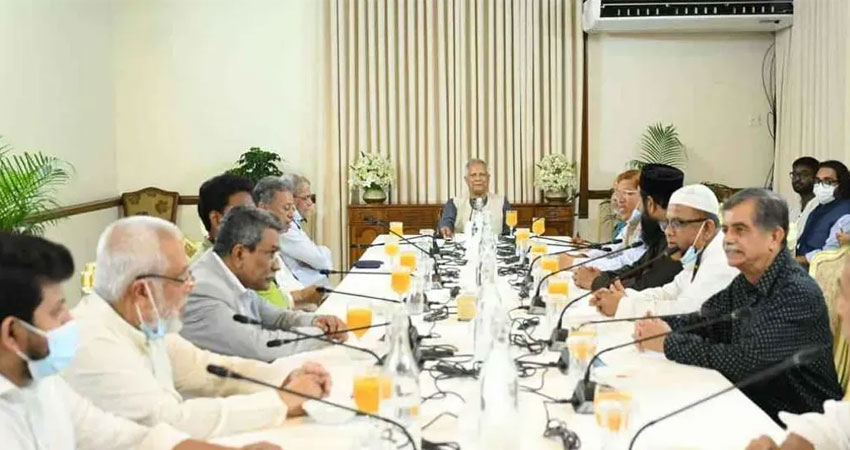 অন্তর্বর্তীকালীন সরকারের প্রধান উপদেষ্টা অধ্যাপক ড. মুহাম্মদ ইউনূসের সঙ্গে বৈঠকে বসেছেন ১৪টি রাজনৈতিক দলের ১৪ জন প্রতিনিধি।