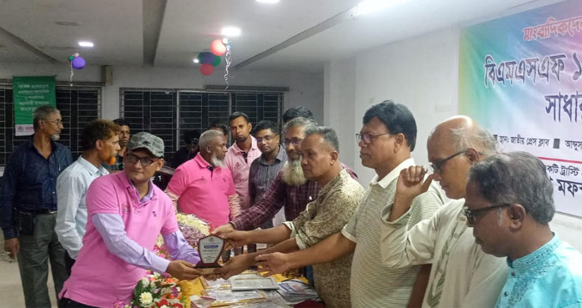 রাজধানীর জাতীয় প্রেসক্লাবের আব্দুস সালাম হলে আয়োজিত বিএমএসএফ-এর প্রতিষ্ঠাবার্ষিকী ও সাধারণ সভায় তাঁকে এ সম্মাননা প্রদান করা হয়। এ সময় বিএমএসএফ ট্রাস্টি বোর্ডের চেয়ারম্যান আহমেদ আবু জাফর, সহ-সভাপতি মোফাজ্জল হোসেনসহ অন্যান্য নেতৃবৃন্দ তার হাতে সম্মাননা ক্রেস্ট তুলে দেন।
