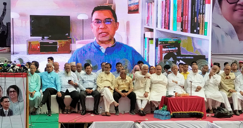 তারেক রহমান আরও বলেন, চব্বিশের আন্দোলনের কারণে আসা সুযোগকে কাজে লাগিয়ে রাজনৈতিক শক্তি প্রতিষ্ঠা করা গেলে; জনগণের রাজনৈতিক এবং অর্থনৈতিক ক্ষমতা নিশ্চিত করতে পারলে, ভবিষ্যতে আর কেউ ফ্যাসিবাদ প্রতিষ্ঠা করার সুযোগ পাবে না। দেশকে তাবেদার রাষ্ট্রে পরিণত করতে পারবে না। আর কোনো রক্তাক্ত চব্বিশ আমাদের দেখতে হবে না।