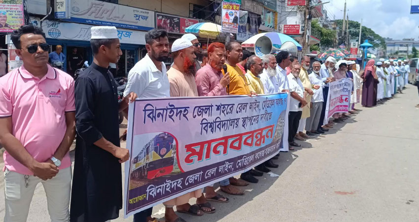 মানববন্ধন শেষে সংক্ষিপ্ত এক সমাবেশে বক্তারা বলেন, ঝিনাইদহবাসীর বহু দিনের স্বপ্ন রেললাইন, মেডিকেল কলেজ ও বিশ্ববিদ্যালয় এখনো বাস্তবায়িত হয়নি। এসব স্থাপনা হলে শুধু জেলার মানুষ নয়, দক্ষিণ-পশ্চিমাঞ্চলের শিক্ষা, স্বাস্থ্য ও অর্থনৈতিক উন্নয়নে বৈপ্লবিক পরিবর্তন আসবে। তাছাড়া এসব প্রতিষ্ঠান গড়ে তোলার ক্ষেত্রে অনেক সহযোগী প্রতিষ্ঠান রয়েছে।