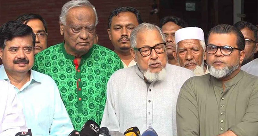ইসলামি দলসহ আপনাদের আগের যে জোট ছিল, আপনারা কি নির্বাচনে জোটবদ্ধভাবে যাওয়ার কোনো আলোচনায় আছেন—এমন প্রশ্নের জবাবে নজরুল ইসলাম খান বলেন, নির্বাচনের এখনো তফসিল ঘোষণা হয় নাই। আসন নিয়ে আলোচনা হয়তো নির্বাচনের তফসিল ঘোষণার পরে, এখন এটা নিয়ে আলোচনার কোনো অবকাশ নাই।