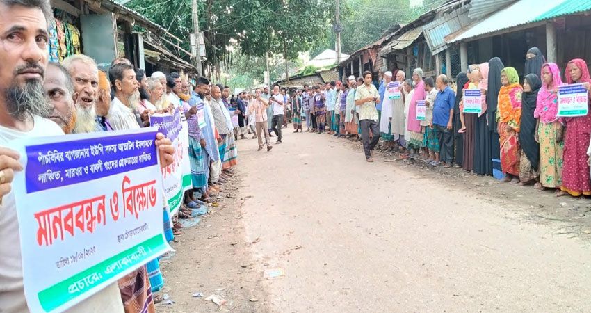 গতকাল সোমবার বিকেলে উপজেলার চৌমুহনী বাজার মোড়ে স্থানীয় এলাকাবাসীর আয়োজনে ঘন্টাব্যাপী এক মানববন্ধন কর্মসূচি পালন করা হয়।
