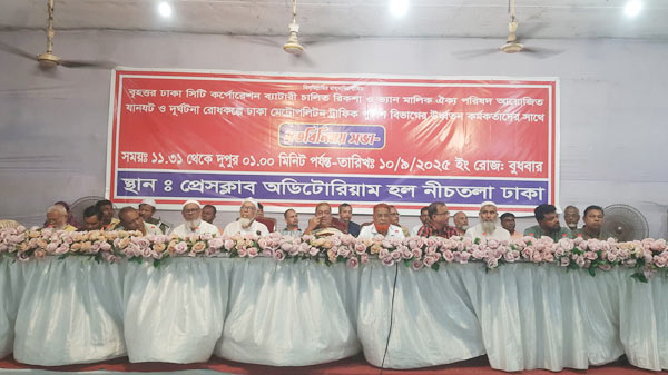 সংবাদ সম্মেলনে আরও উপস্থিত ছিলেন বৃহত্তর ঢাকা সিটি কর্পোরেশন ব্যাটারি চালিত রিক্সা ও ভ্যান মালিক চালক ঐক্য পরিষদের সভাপতি মো. মমতাজ উদ্দিন মজুমদার, উপদেষ্টা হাজী মো. মজিবর রহমান মজিব, হাজী মো. জয়নাল আবেদীন মামুন, যুগ্ম সাধারণ সম্পাদক জহিরুল ইসলাম মাসুম, সহ-সাধারন সম্পাদক মো. আব্দুল বারেক প্রমুখ।