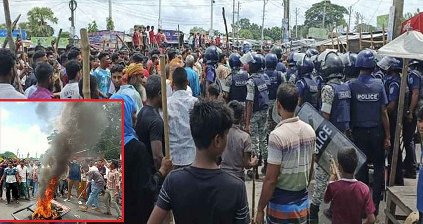 এ সময় বিক্ষোভকারীরা উপজেলা পরিষদের বিভিন্ন সরকারি অফিস ও থানা পুলিশের বেশ কয়েকটি গাড়ি ভাঙচুর করে।
