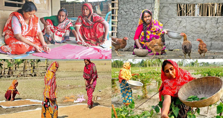 বাংলাদেশের গ্রামীণ অর্থনীতির ভিত্তি আজ অনেকখানি নারীর কাঁধে দাঁড়িয়ে। তারা শুধু ঘর সংসারের দায়িত্ব পালন করেন না, বরং দেশের অর্থনৈতিক চাকা সচল রাখতে এক অমূল্য অবদান রাখেন। ধান মাড়াইয়ের কাজ থেকে শুরু করে কৃষির বিভিন্ন কাজ, হাঁস-মুরগি পালন, বাড়ির আঙিনায় শাকসবজি চাষ, কাপড় সেলাই, নকশি কাঁথা তৈরিসহ-সব ক্ষেত্রেই নারীর উপস্থিতি চোখে পড়ে। শুধু তাই নয়, ক্ষুদ্র উদ্যোক্তা হিসেবেও তারা পরিবারের আয়ের প্রধান উৎস হয়ে উঠেছেন।