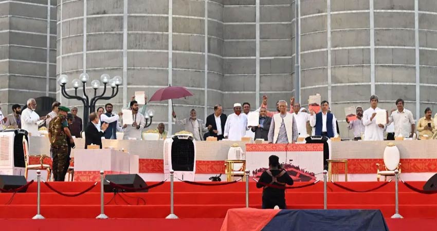 বিকাল চারটায় জুলাই সনদ স্বাক্ষর অনুষ্ঠান শুরু হওয়ার কথা ছিল। তার আগে বেলা ১টার দিকে ‘জুলাই যোদ্ধা’ পরিচয় দিয়ে একদল লোক অনুষ্ঠানস্থলে অবস্থান নেন। একপর্যায়ে পুলিশ লাঠিপেটা করে তাদের সরিয়ে দেয়। এর পর পুলিশ ও ‘জুলাই যোদ্ধাদের’ মধ্যে সংঘর্ষ, ইটপাটকেল নিক্ষেপ, অগ্নিসংযোগের ঘটনা ঘটে।