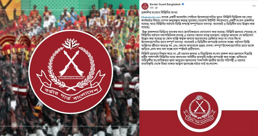 বিজিবি দৃঢ়ভাবে বিশ্বাস করে যে, এই ধরনের অসত্য ও বিভ্রান্তিকর সংবাদ প্রকাশ করে জনমনে বিভ্রান্তি সৃষ্টির পাশাপাশি বিজিবির মতো স্বনামধন্য বাহিনীর ভাবমূর্তি নষ্টের অপচেষ্টা করা হচ্ছে।