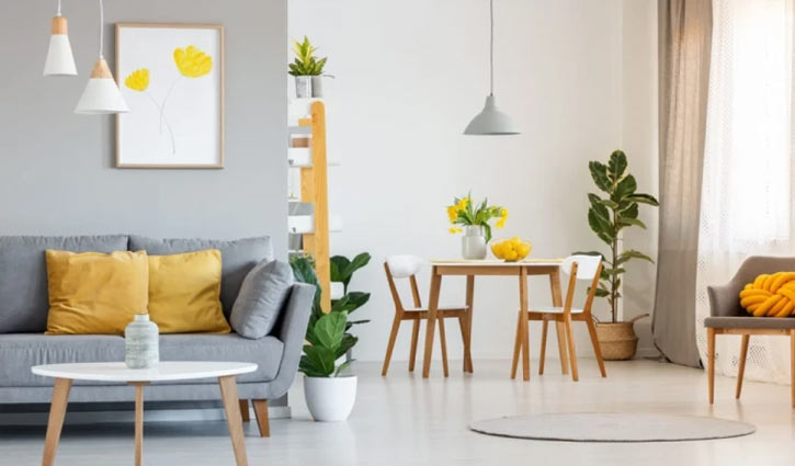 ফার্নিশিং : ঋতুর সঙ্গে মিল রেখে পর্দা, সোফা, কুশন ও বিছানার চাদর পরিবর্তন করুন। হালকা ফেব্রিক গ্রীষ্মে এবং ভারী ও উষ্ণ ফেব্রিক ব্যবহার করুন শীতে। গ্রীষ্মে হালকা ও সুতির পর্দা ব্যবহার করুন, যা বাতাস চলাচলে সাহায্য করে। তবে বর্ষাকালে ভারী পর্দা ও কার্পেট ব্যবহার করুন। শীতকালে পর্দা নির্বাচনে প্রাধান্য পায় কিছুটা ভারী ও গাঢ় রং। ঘন বুননের ভারী কাপড় তাপ কুপরিবাহী। তাই শীতকালে ভারী পর্দা ঝোলালে বাইরের ঠান্ডা বাতাস ঘরে ঢুকতে বাধা পাবে। যে কারণে ঘর অনেকটাই উষ্ণ বোধ হবে।