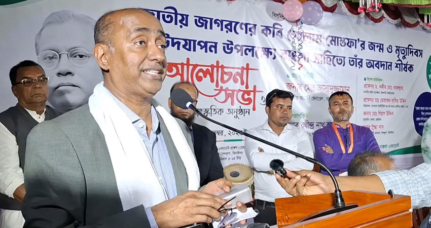 আজ শুক্রবার (১৪ নভেম্বর) বিকেল ৪টায় ঝিনাইদহের শৈলকূপা উপজেলার মনোহরপুর গ্রামে জাতীয় জাগরণের কবি গোলাম মোস্তফার জন্ম ও মৃত্যুদিবস উপলক্ষে আয়োজিত আলোচনা সভা ও সাংস্কৃতিক অনুষ্ঠানে প্রধান অতিথির বক্তব্যে এসব কথা বলেন তিনি। কবির পৈতৃক ভিটায় ঝিনাইদহ জেলা প্রশাসন এ আয়োজন করে।