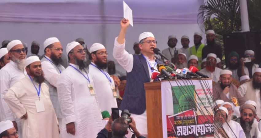 তিনি বলেন, যদি বাংলাদেশের রাষ্ট্র ক্ষমতায় সরকার পরিচালনার দায়িত্ব আল্লাহ রাব্বুল আলামিন আমাদের দেন আপনাদের এখানে আজকে যে সমস্ত দাবি-দাওয়া আছে, আমরা সব দাবি-দাওয়া এই প্রস্তাবের পক্ষে ইনশাআল্লাহ জাতীয় সংসদে আলাপ আলোচনার মাধ্যমে সব ব্যবস্থা গ্রহণ করা হবে।