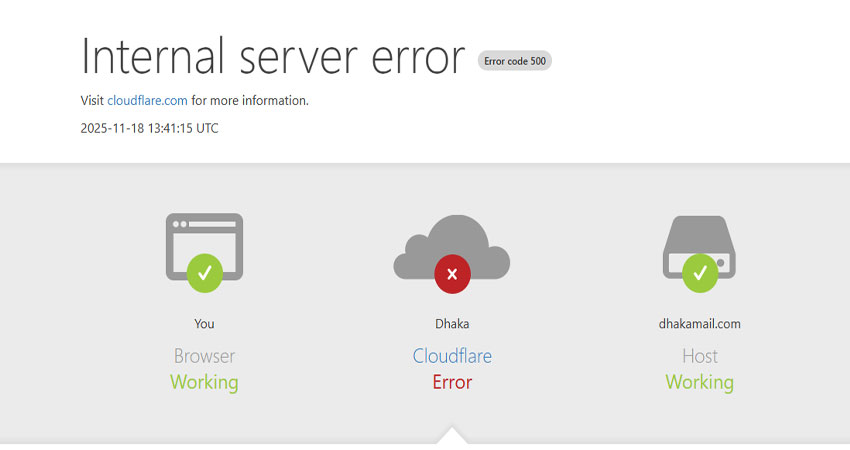 প্রভাবিত ব্যবহারকারীরা একটি বার্তা দেখেন যেখানে উল্লেখ ছিল, ক্লাউডফ্লেয়ারের নেটওয়ার্কে অভ্যন্তরীণ সার্ভার ত্রুটি দেখা দিয়েছে। কয়েক মিনিট পর পুনরায় চেষ্টা করুন।