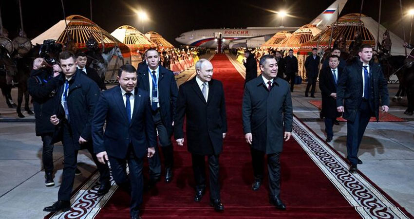 রাজকীয় অভ্যর্থনার মধ্য দিয়ে রাশিয়ার প্রেসিডেন্ট ভ্লাদিমির পুতিনকে স্বাগত জানানো হলো মধ্য-এশিয়ার দেশ কিরগিজস্তানে।