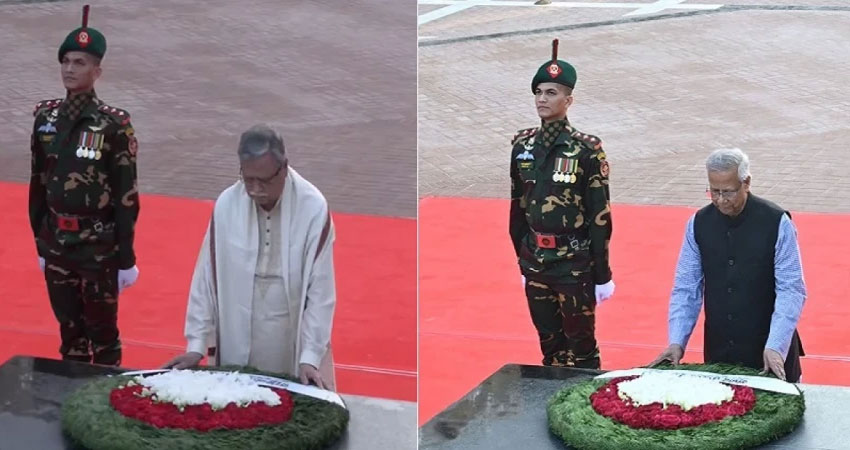শহীদ বুদ্ধিজীবীদের প্রতি শ্রদ্ধা নিবেদন করেছেন রাষ্ট্রপতি মো. সাহাবুদ্দিন ও অন্তর্বর্তী সরকারের প্রধান উপদেষ্টা ড. মুহাম্মদ ইউনূস। রোববার (১৪ ডিসেম্বর) সকাল ৭টায় রাষ্ট্রপতি মিরপুর বুদ্ধিজীবী স্মৃতিসৌধে পুষ্পস্তবক অর্পণ করেন। এরপর সকাল ৭টা ২০ মিনিটে পুষ্পস্তবক অর্পণের মাধ্যমে শ্রদ্ধা নিবেদন করেন প্রধান উপদেষ্টা।
