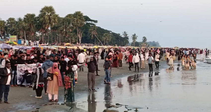 সূর্যোদয় সূর্যঅস্তের লীলাভূমি সমুদ্র সৈকত কুয়াকাটা। সাপ্তাহিক ছুটিতে পর্যটকদের আনাগোনা বেড়ে গেছে। হালকা হিমেল বাতাস, সমুদ্রের ছোট ছোট ঢেউ তীরে এসে আছড়ে পড়ছে। এমন দৃশ্য উপভোগ করছে আগত পর্যটকরা। আবার কেউ ছবি তুলছেন, কেউ ছাতার নিচে বসে প্রকৃতি দেখছেন। এ ছাড়া কেউ ঘোড়ার পিঠে চড়ে পুরো সৈকতের এক প্রান্ত থেকে অপর প্রান্ত ঘুরে বেড়াচ্ছেন।