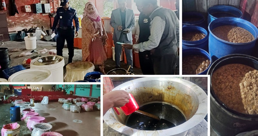 অভিযানে দেখা যায়, আখের চিটাগুড়, পচা লালি গুড় ও বিভিন্ন ক্ষতিকর কেমিক্যালের রং মিশিয়ে খেজুর গুড়ের মরচাঁ ব্র্যান্ডের নামে বাজারজাত করছিলেন কারখানার মালিক মো. দেলোয়ার হোসেন দুলাল। এ অবৈধ ও মানবদেহের জন্য ক্ষতিকর পণ্য উৎপাদনের দায়ে ভোক্তা অধিকার সংরক্ষণ ও ভেজাল খাদ্যদ্রব্য নিয়ন্ত্রণ আইনে জরিমানা ও কারখানা সিলগালা করা হয়।