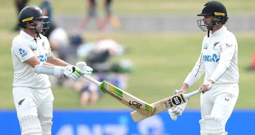 ১৫৫ রান এগিয়ে থেকে দ্বিতীয় ইনিংসে ব্যাটিং করতে নামা নিউজিল্যান্ডের ওপেনিং জুটি থেকে আসে ১৯১ রান। কনওয়ে ১০০ রানের ঘরে ফেরার পর জুটি ভেঙে যায়। এরপর লাথামও সেঞ্চুরি করেন। উইলিয়ামসন ৩৭ বলে ৪০, রবীন্দ্র ২৩ বলে ৪৬ রানে অপরাজিত ছিলেন।