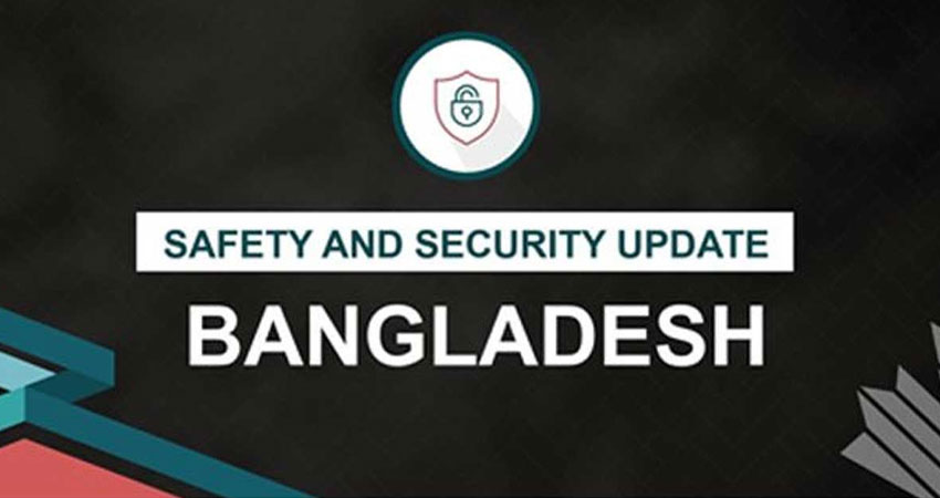 ফলে উচ্চ মাত্রার সাবধানতা অবলম্বন করুন। বাংলাদেশে সম্ভাব্য বিক্ষোভ, সংঘর্ষ এবং দেশব্যাপী সাধারণ ধর্মঘটের কারণে উচ্চ মাত্রার সতর্কতা অবলম্বন করুন। সামান্য সতর্কবার্তা ছাড়াই নিরাপত্তা পরিস্থিতির অবনতি হতে পারে।