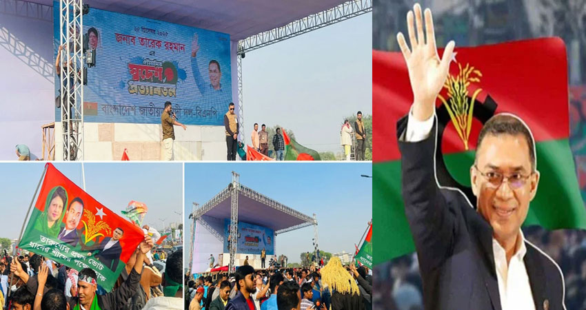 স্বদেশ প্রত্যাবর্তন উপলক্ষ্যে অতীতের সব রেকর্ড ভেঙে লাখ লাখ মানুষের সমাগম ঘটিয়ে রাজধানীর কুড়িলের ৩০০ ফিট এলাকায় তারেক রহমানকে গণসংবর্ধনা দেওয়ার প্রস্তুতি নিয়েছে বিএনপি। ইতোমধ্যে সারা দেশ থেকে ঢাকায় আসতে শুরু করেছেন দলীয় নেতাকর্মীরা। অনুষ্ঠানস্থলের প্রস্তুতিও প্রায় শেষ পর্যায়ে রয়েছে। ইতোমধ্যে সংবর্ধনা অনুষ্ঠানের জন্য ঢাকা বিভাগীয় কমিশনারের কার্যালয় থেকে আনুষ্ঠানিক অনুমতি পেয়েছে দলটি।