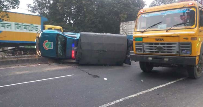 মুন্সীগঞ্জের গজারিয়ায় কাভার্ড ভ্যানের ধাক্কায় হাইওয়ে পুলিশ ও থানা পুলিশের টহলরত দুটি গাড়ি উল্টে গেছে। এ ঘটনায় হাইওয়ে পুলিশের এক সার্জেন্টসহ দুই পুলিশ সদস্য আহত হয়েছেন। দুর্ঘটনার পর কাভার্ড ভ্যানের চালক ও হেলপারকে আটক করেছে পুলিশ।