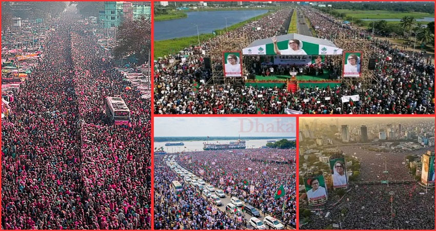 ছড়িয়ে পড়া ছবিগুলোর একটিতে দেখা যায়- মহাসড়কে অনেক মানুষ, যার দুই পাশে বস্তি এলাকার ছোট ছোট ঘর। মূলত সমাবেশ হয়েছে তিনশ ফিট এক্সপ্রেসওয়েতে। যেখানে কোনো বস্তি এলাক নেই।