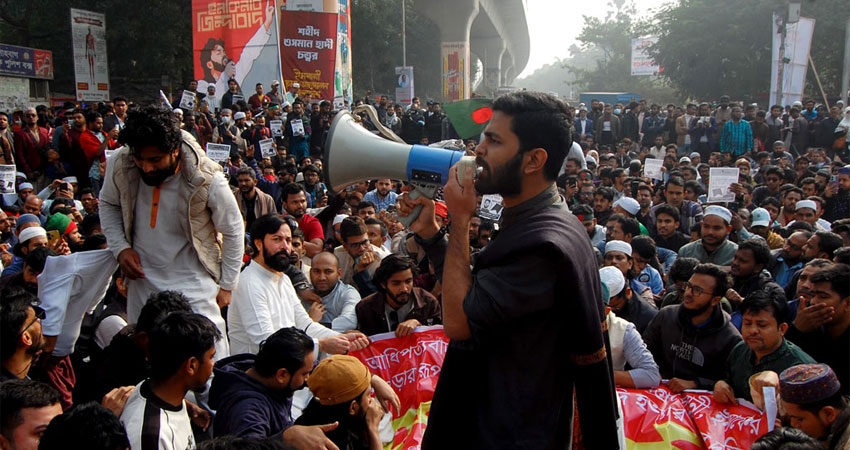 এ সময় তারা ‘নারায়ে তাকবির, আল্লাহু আকবার’, ‘দিল্লি না ঢাকা, ঢাকা ঢাকা’, ‘এক হাদি লোকান্তরে, লক্ষ্য হাদি লড়াই করে’, ‘লীগ ধর, জেলে ভর’সহ নানা স্লোগান দিতে থাকেন।