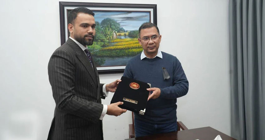তারেক রহমানের কাছে প্রধান উপদেষ্টার পক্ষ থেকে শোক বাণী পৌঁছে দেন প্রধান উপদেষ্টার একান্ত সচিব সজিব এম খায়রুল ইসলাম ও সহকারী প্রেস সচিব নাঈম আলী।
